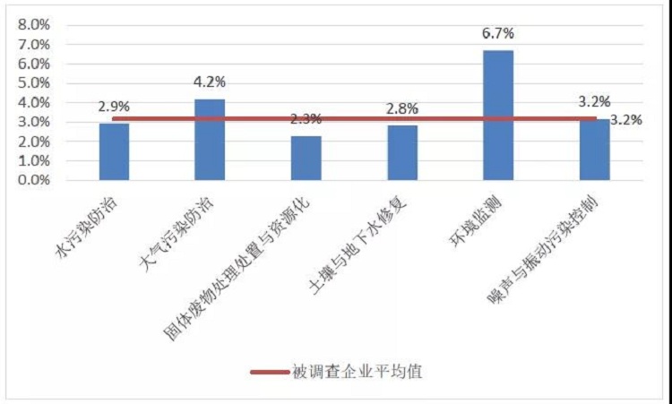 2020年環(huán)保企業(yè)平均研發(fā)支出同比增長16.8%,研發(fā)支出占營業(yè)收入的比重為3.2%,高于2020年全國規(guī)模以上工業(yè)企業(yè)研發(fā)支出占營業(yè)收入的比重(1.41%)。其中,環(huán)境監(jiān)測(cè)領(lǐng)域研發(fā)支出占營業(yè)收入的比重最高,達(dá)6.7%。研發(fā)人員數(shù)量占從業(yè)人數(shù)的比重為17.1%,同比增長0.6%。企業(yè)平均專利授權(quán)數(shù)從2019年的4.5件增長到4.8件。